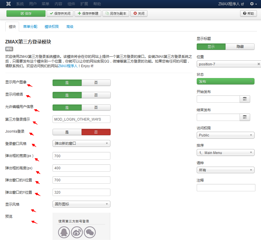 5、前台模块发布效果设置